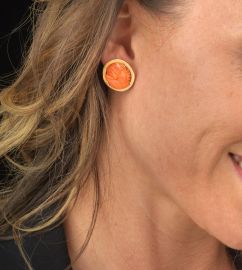 PAIO DI ORECCHINI A BOTTONE CON CORALLO INCISO