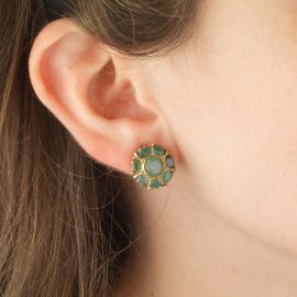 PAIO DI ORECCHINI A BOTTONE CON SMERALDI