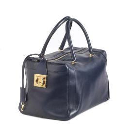 SALVATORE FERRAGAMO BLU LEATHER BOSTON BAG