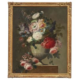 a pair of paintings, oil on canvas, 55x45 cm, within a carved gilt wooden frame, 61x51 cm