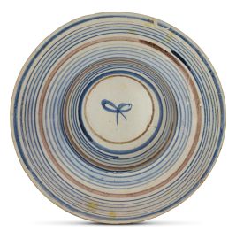 Il tondino armoriale s’inserisce a pieno titolo tra le opere delle botteghe faentine attive alla fine del quattrocento e nei primi decenni del Cinquecento. Il decoro, che può essere messo in relazione con i tessuti orientali, ha un ampio successo in tutte le manifatture del periodo, ma trova a Faenza esempi di grande effetto decorativo. Un esempio di come il decoro sia stato associato a fornimenti per famiglie importanti ci deriva da un piatto con emblema Sassatelli.