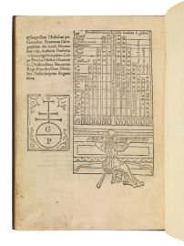 In folio (276 x 204 mm). [iv] c [ii] carte. Segnatura a4 A-M8 N6. Completo. Ritratto xilografico dell’autore sul frontespizio, stemma di Jean Grolier alla carta a4v, seguita da dedica a lui alla carta successiva, grandi iniziali xilografiche figurate, grande xilografia al verso dell’ultima carta, raffigurante un suonatore d’organo e la marca tipografica di Gottardo da Ponte. Numerosissimi esempi e schemi musicali in xilografia, talvolta a piena pagina. Ex libris di C. W. Dyson Perrins e di Otto Schäfer. Legatura in marocchino color mattone scuro di Douglas Cockerell, datata “1900”, piccola losanga floreale al centro dei piatti entro due cornici concentriche decorate a secco e con piccole stelle dorate a sei punti agli angoli, titoli in oro al piatto anteriore, dorso a nervi con scomparti decorati a secco, tagli dorati. Conservato entro custodia in mezzo marocchino mattone scuro e tela, titoli al dorso. Frontespizio un po’ polveroso, piccola macchia al verso, qualche fascicolo pallidamente brunito, angoli della legatura leggerissimamente ammaccati, ma nel complesso copia molto buona.