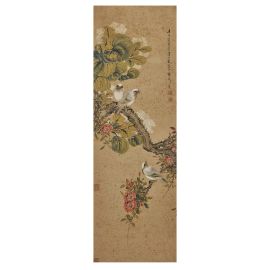 民国时期 花鸟双联画 纸本设色 颜伯龙