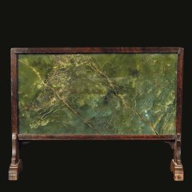 清 十九至二十世纪 雕刻人物山水碧玉屏
