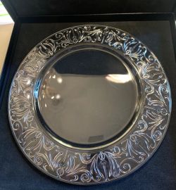 8 sottopiatti in cristallo con bordo inciso con decoro rinascimentale