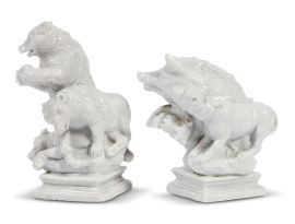 TWO GINORI GROUPS OF “CACCINE” (A WILD BOAR AND TWO DOGS FIGHTING AND TWO BEARS WITH A DOG), DOCCIA, 1760-1770