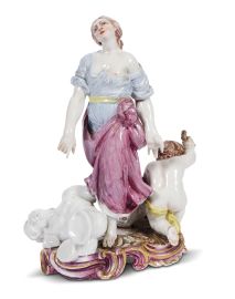 A GINORI GROUP OF ALLEGORY OF SCULPTURE, DOCCIA, CIRCA 1770