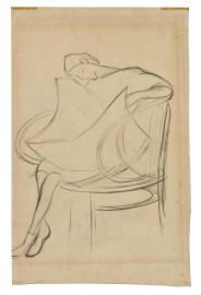 on the reverse another drawing by pencil and watercolor on paper "Woman's figure with children"