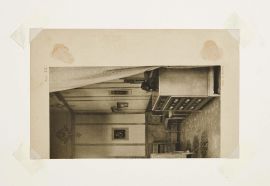 on the reverse cropped photo of an interior and inscribed "TAV. 42; Arch. E. MONTI"