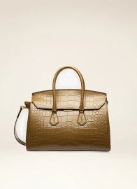 Part of the Bally Sommet family, the women's Saphyr top handle bag in glossy croco-stamped leather serves as both a top handle handbag and a business bag. The magnetic clasp closure opens to reveal a series of three compartments including one zipped pocket and an additional side slip. The Saphyr comes with an adjustable, detachable leather shoulder strap.