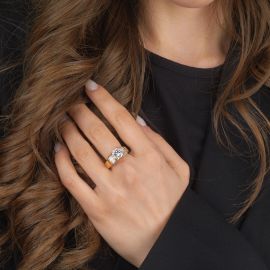 in oro giallo 18kt, al centro un diamante taglio brillante di ct 2.30 circa, affiancato da due file di diamanti taglio baguette per ct 1 circa, punzone 18kt, mis. 56, gr. 9