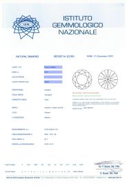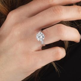 in oro bianco 18kt, al centro un diamante taglio brillante di ct 3.01, colore I, purezza Vvs2, affiancato da due diamanti taglio baguette per ct 0.40 circa, mis. 51, gr. 4. Corredato di certificato IGN del 17/12/2021 attestante le caratteristiche.