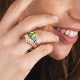 ANELLO CON PERIDOT ZAFFIRI E DIAMANTI