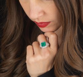 EMERALD AND DIAMOND RING IN 18KT WHITE GOLD