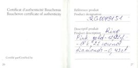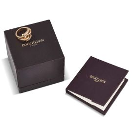 in oro rosa 18kt, al centro un motivo quadrangolare impreziosito da diamanti taglio brillante per ct 0.40 circa, firmato "Boucheron", punzoni 750, del fabbricante e numero seriale, mis. 51, gr. 11. Corredato di scatola, controscatola e certificato di acquisto.