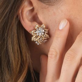 BULGARI FLOWER-SHAPED AND DIAMOND EARRINGS IN 18KT YELLOW GOLD