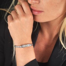 cassa di forma rettangolare in platino, corona posta sul fondello, lunetta liscia, quadrante argenté firmato Cartier France, numeri arabi stampati, movimento a carica manuale, bracciale in platino a corda intrecciata, punzoni francesi, lungh. interna cm 16 circa, chiusura in oro giallo e platino a scomparsa, gr. 36, dim. mm 7x17