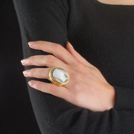 CODOGNATO CHALCEDONY CAMEO RING IN 18KT YELLOW GOLD