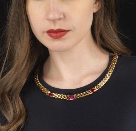 GARNET CURB CHAIN NECKLACE IN 18KT YELLOW GOLD