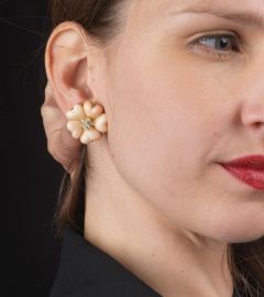 PAIO DI ORECCHINI A FORMA DI FIORE CON CORALLO ROSA E DIAMANTI