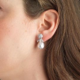 PEARL AND DIAMOND DROP EARRINGS IN 18KT WHITE GOLD