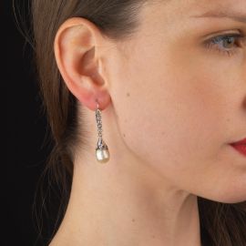 PAIO DI ORECCHINI PENDENTI CON PERLE NATURALI E DIAMANTI
