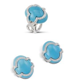 TURQUOISE PASTE AND DIAMOND PARURE IN 18KT WHITE GOLD