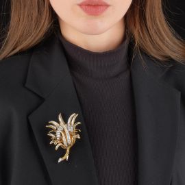 FLOWER-SHAPED DIAMOND BROOCH IN 18KT TWO TONE GOLD