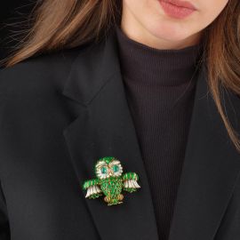OWL-SHAPED ENAMELED BROOCH IN 18KT TWO TONE GOLD