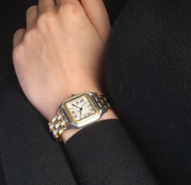 CARTIER PANTHERE MEDIUM SIZE YELLOW GOLD AND STAINLESS STEEL WRISTWATCH