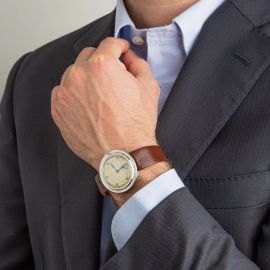 I collezionisti di segnatempo Omega conoscono la rarità e la bellezza di questo orologio. Il presente modello, Omega "Disco Volante" o Flying Saucer risale agli anni '30 circa. Il suo nome deriva dalla cassa rotonda con la base a disco e il pulsante integrato, la lunetta a scalini e le anse nascoste. Questo esemplare assai originale è la variante più grande che misura 38 mm. Dall'aspetto intrigante e magnetico nei colori del quadrante virato, ricorda l'aspetto di oggetto volante capace di trasportare in un'affascinante atmosfera amata da ogni collezionista di segnatempo.
