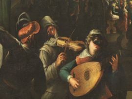 L’impostazione compositiva, con il motivo del gruppo dei musici a sinistra in primo piano e l’animato convito che si perde sul fondo, le figurine dalla forma allungata, il gusto per la descrizione dettagliata e il vivace colorismo, sono caratteristiche che facilmente si ritrovato nelle tele di Ludovico, lodato da Van Mander nel suo Schilder Boeck per il virtuosismo nelle resa di paesaggi e l’inventiva nelle composizioni (Cfr. Karel van Mander, Le vite degli illustri pittori fiamminghi, olandesi e tedeschi, Roma 2000, p. 359): si vedano il Convito di Epulone della Gemäldegalerie di Kassel e il Concerto del Museo Civico di Treviso.