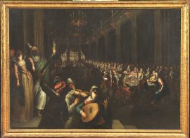 La riuscita sintesi tra la cultura manierista d’oltralpe e quella veneta cinquecentesca – Veronese, Tintoretto e Bassano - consente di suggerire l’annessione di questa vivacissima tela al catalogo di Lodewijk Toeput detto Ludovico Pozzoserrato (Anversa o Mechelen, ca. 1550 - Treviso, 1604/1605), pittore di formazione fiamminga che dopo aver viaggiato tra Venezia, Firenze e Roma si trasferisce definitivamente a Treviso diventando artista richiestissimo su tutto il territorio veneto.