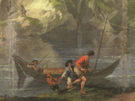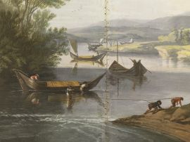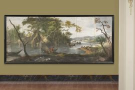 Evidentemente pendant del lotto precedente, questa luminosa veduta delle sponde dell’Arno nell’immediata campagna fuori Firenze (probabilmente verso sud) presenta oltre che le medesime eccezionali dimensioni, l’ampio taglio orizzontale, in questo caso definito dall’ansa del fiume, tema di cui un precedente è stato visto nelle serie di incisioni di Callot dei Quattro paesaggi e dei Paesaggi italiani (Barbolani di Montauto 1996, p. 81, in cat. 29).