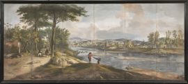 La raffigurazione topografica del dipinto offerto, molto accurata e tutta giocata su delicate tonalità del verde e dell’azzurro con gli immancabili tocchi squillanti in primo piano – si veda la giubba rossa del pescatore -, mostra una soluzione successivamente adottata da Vanvitelli, Zocchi e Patch.