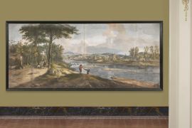 Proveniente proprio dalla collezione Gerini e oggi presso la collezione della Cassa di Risparmio di Firenze (Barbolani di Montauto 1996, pp.68-70, cat. 12) è una tela di più contenute dimensioni con lo stesso originale punto di vista della nostra tela, dal viale delle Cascine folto di pini e querce, con la suggestiva apertura sull’Oltrarno da Porta san Frediano che passando per il campanile di Santo Spirito e Palazzo Pitti arriva sino al forte Belvedere sulle colline azzurrate. Come giustamente è stato notato, la mancanza della chiesa di San Frediano in Cestello, confermerebbe la datazione alla quale far risalire la veduta, intorno al 1680, anno in cui ebbero inizio i lavori per la riedificazione di tale edificio religioso.