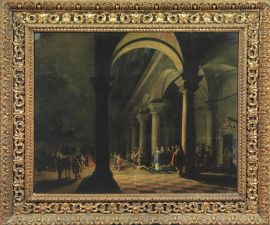 Sulla base della colonna di sinistra è presente un’inscrizione non ben leggibile, probabilmente la firma dell’artista.