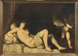 La tela replica il celebre dipinto eseguito da Tiziano Vecellio 1545 oggi conservato al Museo Nazionale di Capodimonte a Napoli.