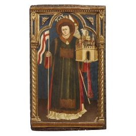 La posizione in netto profilo di Prosdocimo, che guarda verso destra, assicura sul fatto che la tavola costituiva il laterale sinistro di una pala d’altare smembrata di dimensioni contenute. A questo dipinto infatti ho avuto modo di collegare in passato altri due scomparti, che più tardi sono felicemente confluiti nella stessa collezione, consentendo così di recuperare l’unità del complesso originario. Le due tavole raffigurano rispettivamente Santo Stefano in sgargiante dalmatica rossa, con turibolo, libro, palma e sulla testa la pietra, strumento del martirio, e San Lorenzo in elegante veste diaconale bianca, che regge una piccola graticola, suo consueto attributo iconografico, e un Angelo, forse Michele, dalle lunghe ali bianche.