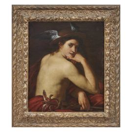 Neo-tizianesco nei colori e insieme governato da un preciso impegno disegnativo, il nostro Mercurio potrebbe suggerire la prima attività di Alessandro Varotari, incantato dagli affreschi del Santo nella città natale ma insieme ligio ai dettami di un disegno più rigoroso e classicizzante, come lo ritroviamo nell’Incredulità di San Tommaso in Santa Lucia a Padova, del 1610, o ancora nella Pala delle Milizie nel duomo di Palmanova, dove San Teodoro volge il capo a guardarci oltre la spalla.