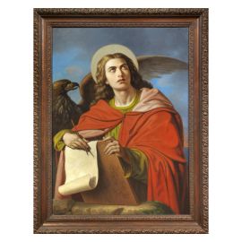 Al fianco di Gesù sin dall’inizio del suo ministero sino all’ultima Cena e ai piedi della croce assieme a Maria, l’apostolo Giovanni prese a diffondere il cristianesimo in Asia Minore, sino alla condanna all’esilio sull’isola di Pathmos impartitagli dall’imperatore Dominiziano. In questo luogo Giovanni ricevette la rivelazione del libro dell’Apocalisse, con cui avrebbe contemplato la Vera Luce del Verbo, come descritto nel Prologo del quarto vangelo, così come l'aquila, si riteneva, può fissare direttamente la luce solare.