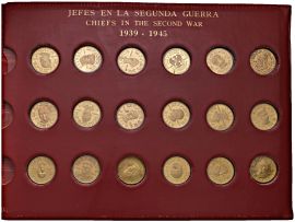 DICIOTTO MEDAGLIE COMMEMORATIVE IN ORO DEI CAPI DELLA SECONDA GUERRA MONDIALE. SERIE EMESSA DAL BANCO ITALO-VENEZUELANO IN ELEGANTE ASTUCCIO IN PELLE