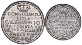 DUE MONETE DA UNA LIRA E UNA MEZZA LIRA DEL GIURAMENTO DI GIUSEPPE II D’ASBURGO-LORENA (1780-1790) DATATE 1781