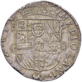 Ar gr. 13,88 D/ Busto corazzato a d. Sotto data R/ Stemma spagnolo coronato e caricato delle armi di Milano MIR 388/2 Crippa 8 (busto maturo)
