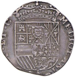 Ar gr. 6,72 D/ Busto corazzato a d. Sotto data R/ Stemma spagnolo coronato e caricato delle armi di Milano MIR 389/1 Crippa 9 (busto giovanile)