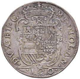 MILANO. FILIPPO III (1598-1621) DENARO DA 100 SOLDI 1605