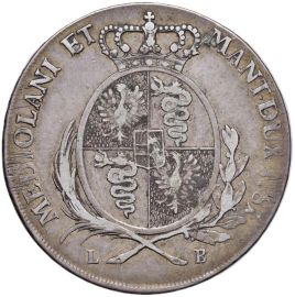 Ar gr. 22,91 D/ Busto laureato a d. R/ Stemma coronato ovale di Milano caricato con lo scudetto d’Austria e Lorena MIR 446/1 Crippa 3/A
