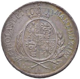 Ar gr. 11,48 D/ Busto laureato a d. R/ Stemma coronato ovale di Milano caricato con lo scudetto d’Austria e Lorena MIR 447/4 Crippa 4/A