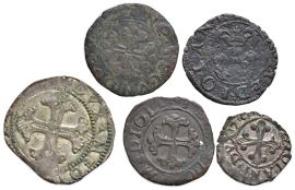 MILANO. SETTE MONETE IN MISTURA DI MASSIMILIANO (1512-15) E FRANCESCO II (1522-25) SFORZA