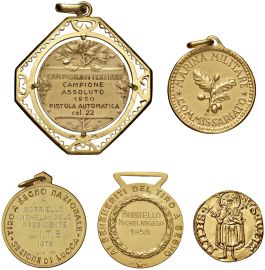 QUATTRO MEDAGLIE IN ORO 750 E UNA IN ARGENTO